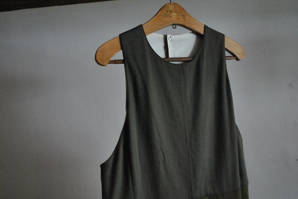 紺色 グレーの試作を経て  販売可能な一着がやっとこさ。こちらのカーキ一着のみ。