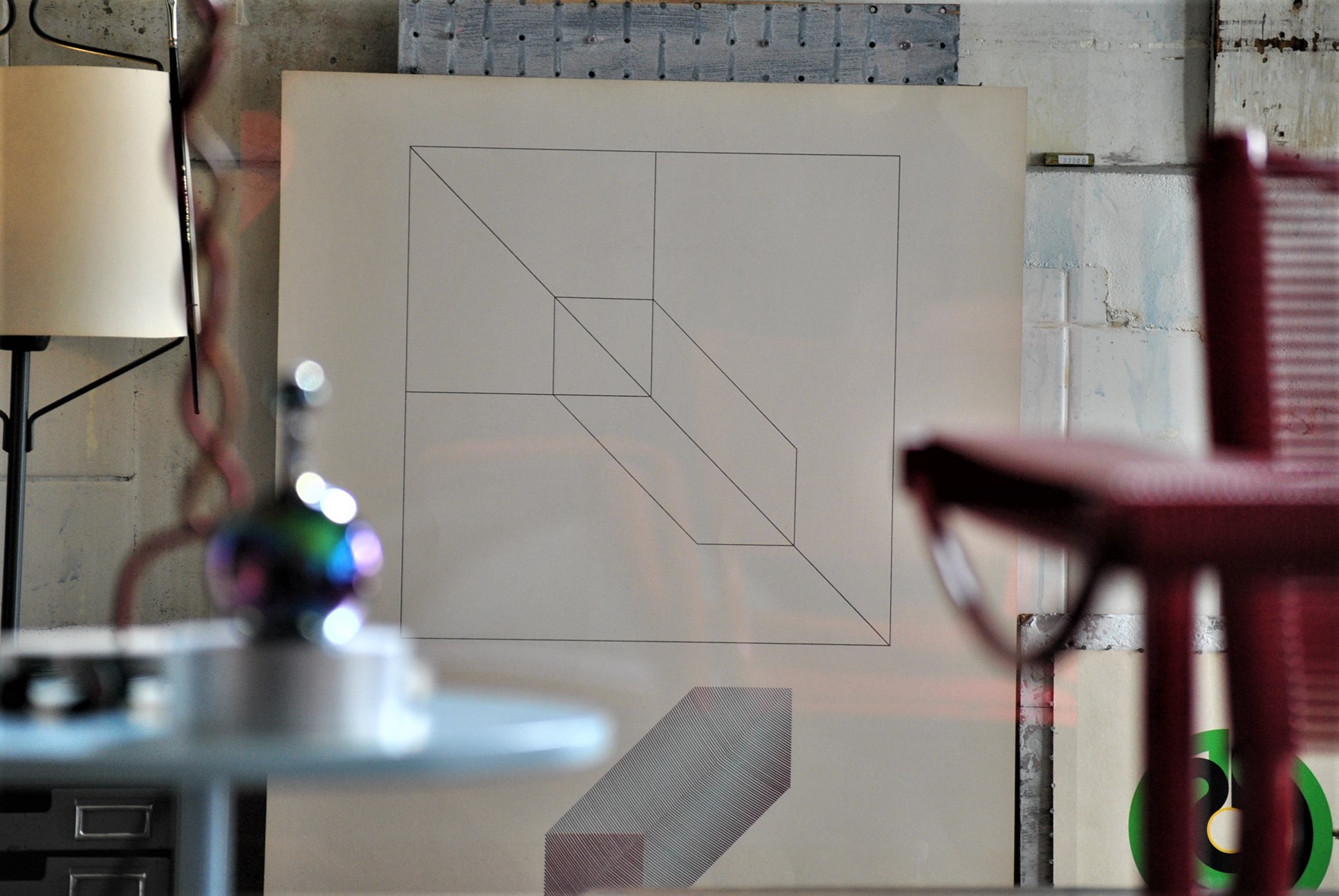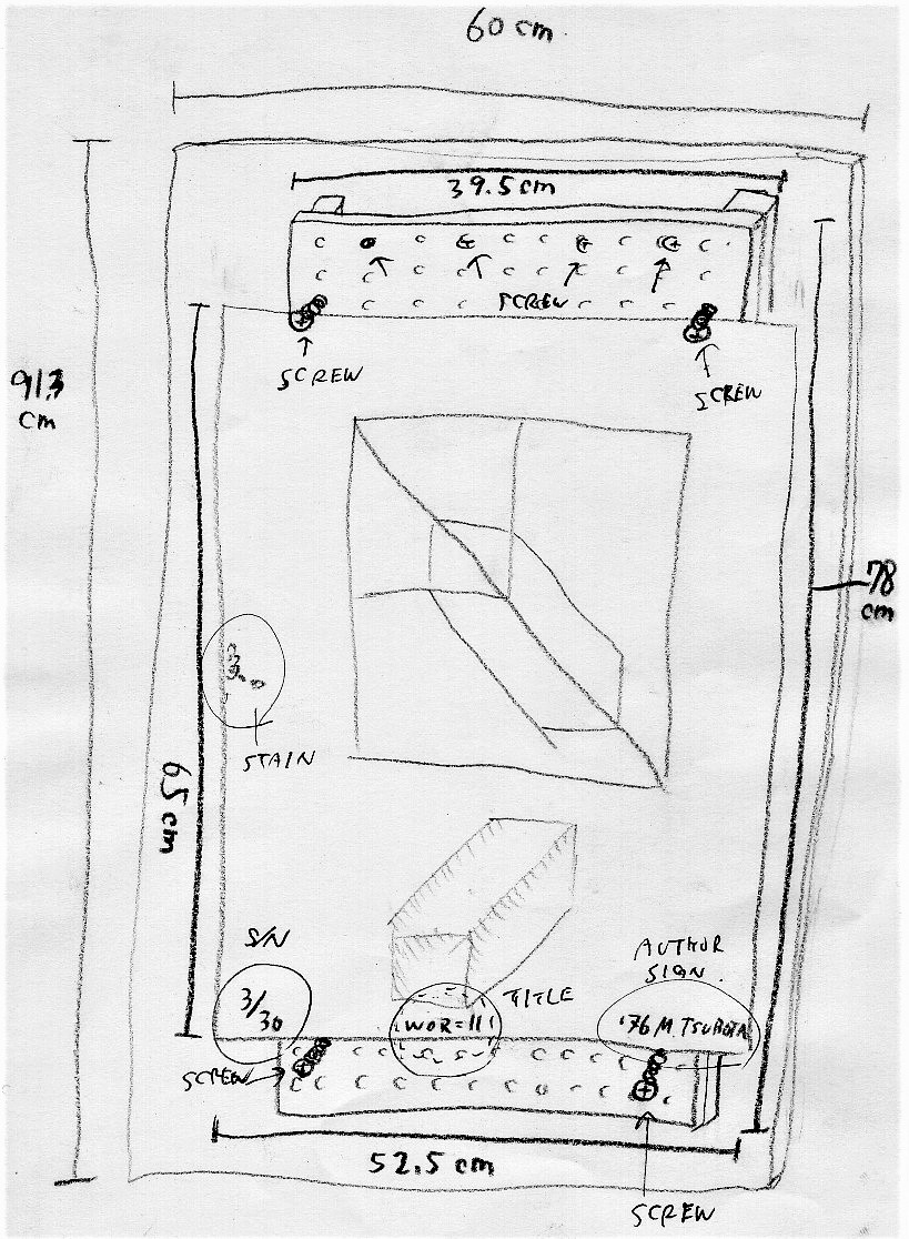 二つの図形。 リトグラフかシルクスクリーンか。 アクリル板と多孔板をネジで留めています。間に作品が挟まってます。 このままダンボールに包んで配送します。